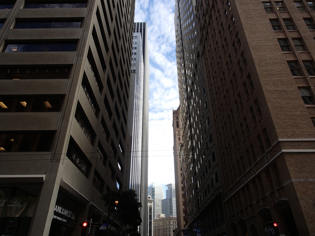 坂の多いサンフランシスコで、ここは全くの平地で高層ビルが乱立。