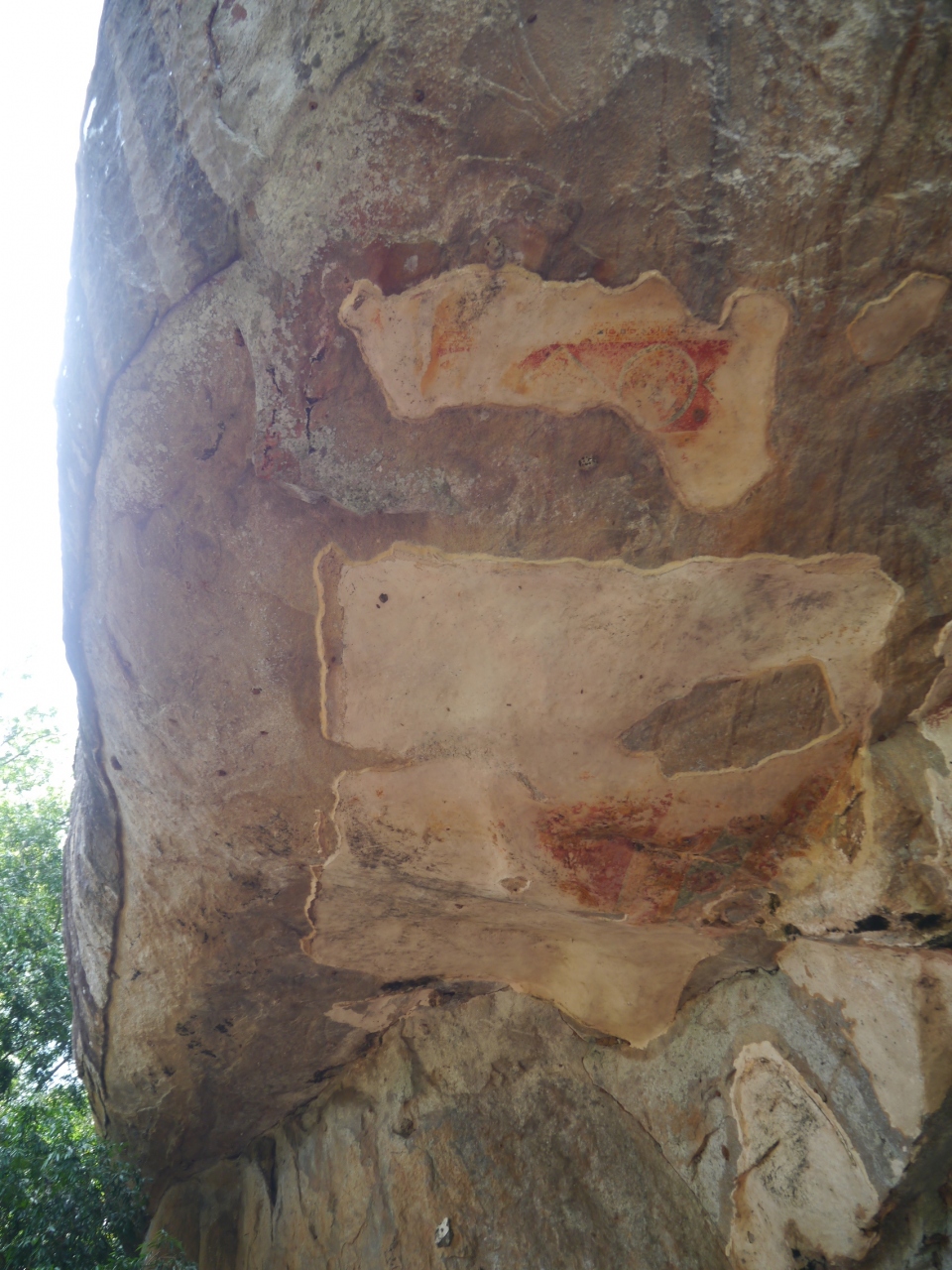 シーギリヤロックを下り、駐車場へ向かう途中にある、コブラの頭の形をした岩。シーギリヤレディ程ではないが、下部には一部鮮やかな壁画が残っている。コブラはブッダが瞑想している時に雨が避ける傘になったことで、仏教では大事にされている。近くにはコブラ使いがいて、おそらく観光客向けに何かをしてチップをねだっているのだと思われた。
