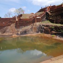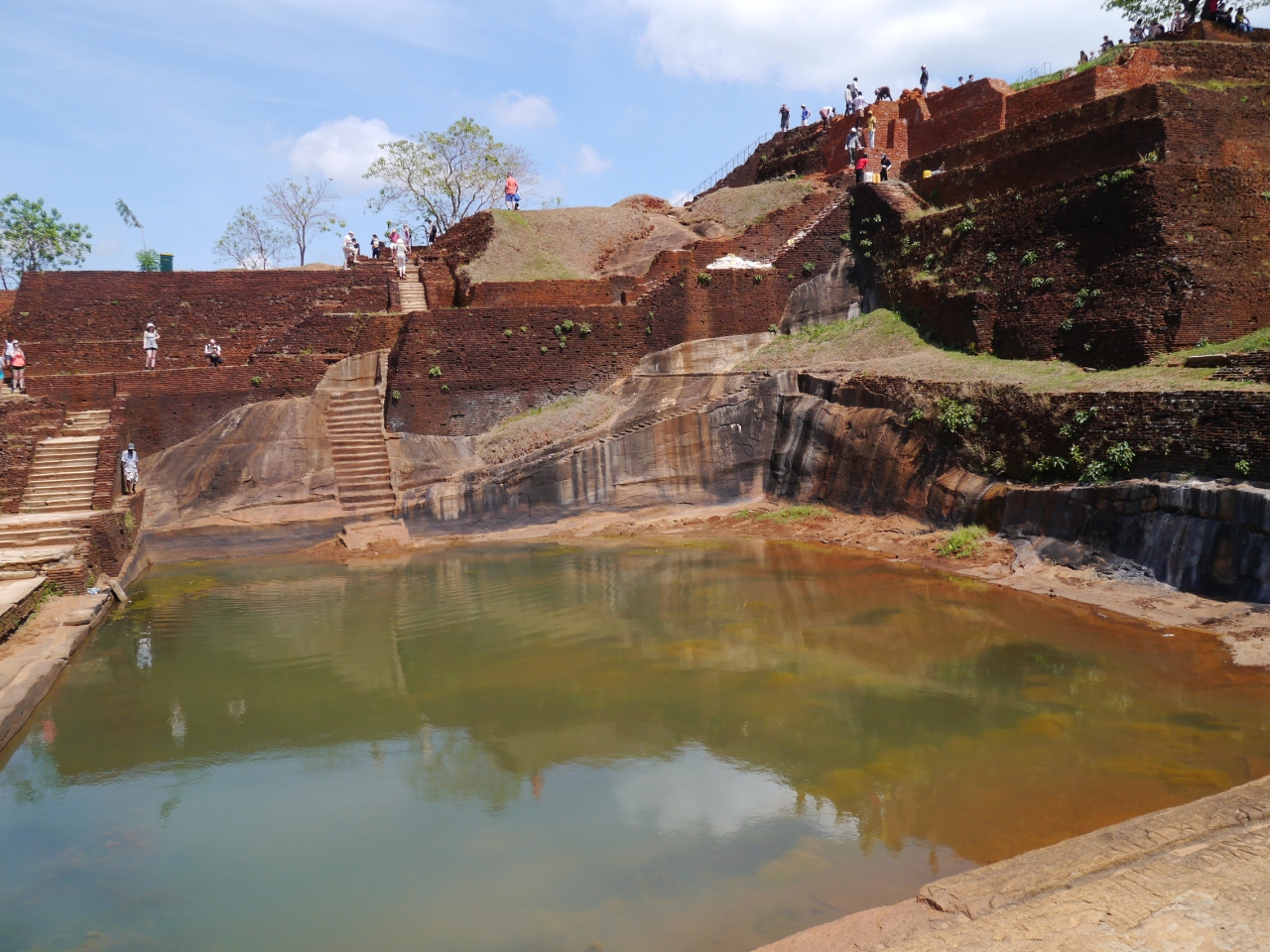 シーギリヤロックの上部にある宮殿の一部にある王の沐浴場。シーギリヤロックに向かう道の途中にもある。水は雨水を貯めて使っていたそうで、下から汲み上げたのではないとのこと。意外にも水は綺麗で、1600年たった今でも使えそうだった。