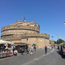 サンタンジェロ城の近くから見えるサンピエトロ大聖堂が良い!城は城と思えない形をしていましたが監獄としても使われていたようですね。中には入りませんでした。また川沿いにあるので座って一休みするのもよいかもしれません。
