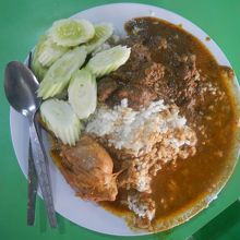 この日は朝からジョホーバルまでバスで移動しなければならないのでゲストハウスの近くで朝食を食べようと思い、探したらこの食堂がすぐ宿の近くにあったのでよかった。おかずを適当に選んでご飯の上に乗せてもらうシステムだ。 鶏肉など適当におかずを選ぶ。これで5RMだった。味には満足だった。