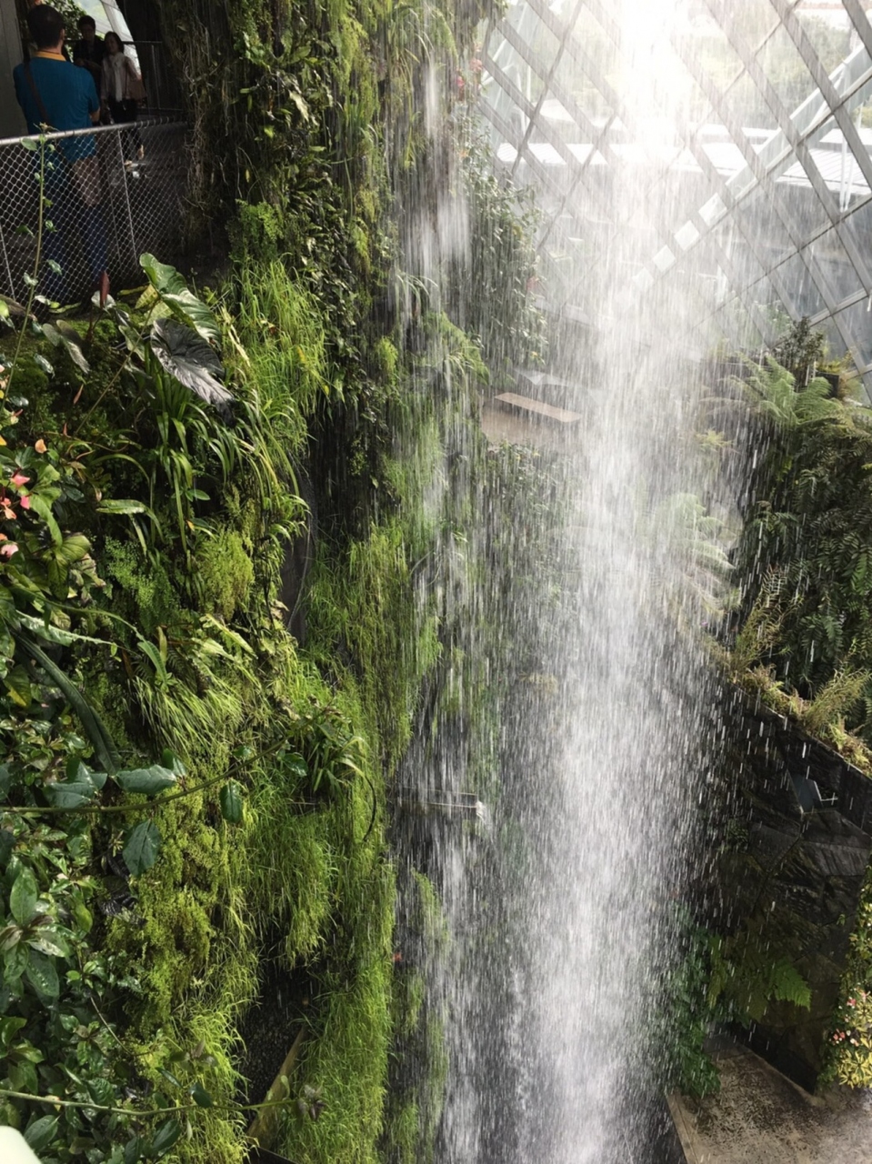 ガーデンズバイザベイの中にあるフラワードーム近くにある滝です。