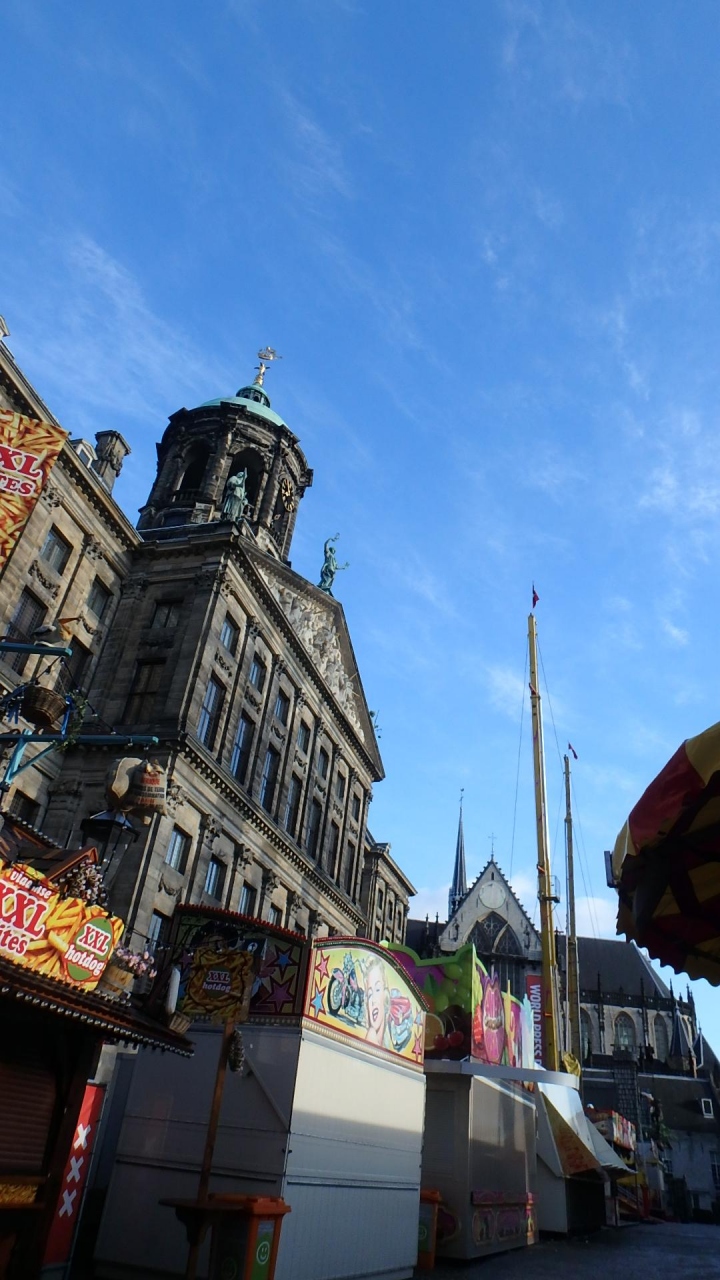 なぜ、裏面写真をトップに挙げたかというと、お祭り期間中という事で正面のダム広場は移動遊園地の乗り物でいっぱいになっており王宮の建物がよく見えないという事態に…。