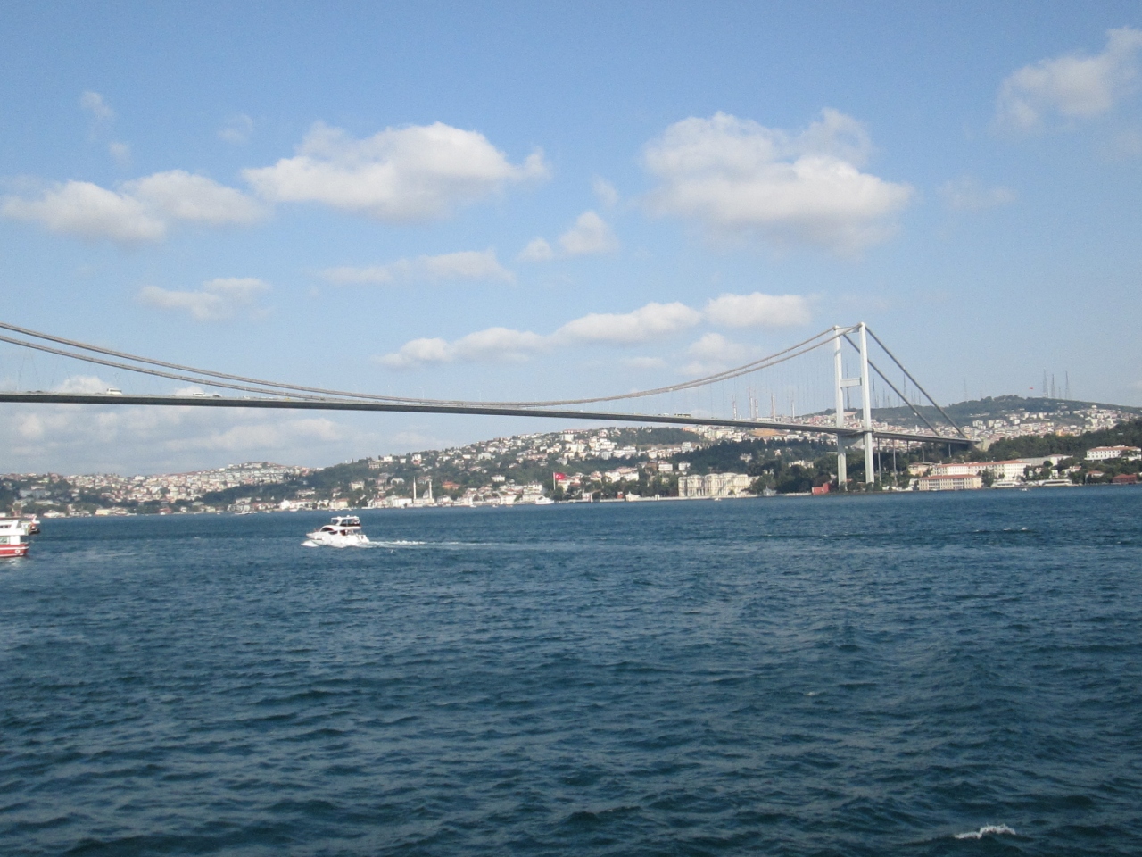 アジア側とヨーロッパ側を結ぶ大きな橋です。ボスポラスクルーズで海峡から眺めました。とても大きな橋で迫力がありました。全長は1510mあるそうです。交通量は一日約180,000台通るそうです。トルコの人にとっては欠かせない橋となっているようです。