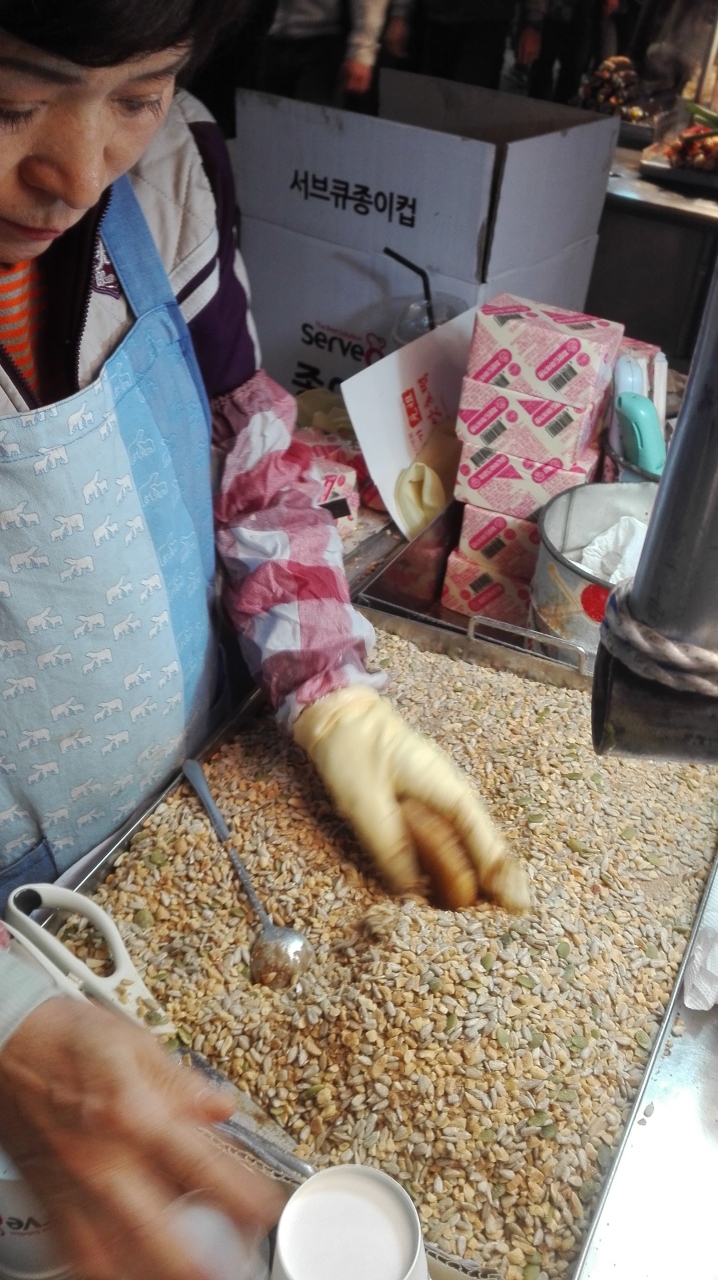BIFF広場には沢山の屋台がありますが、その中でも行列が絶えないのはホットクの屋台でしょう。