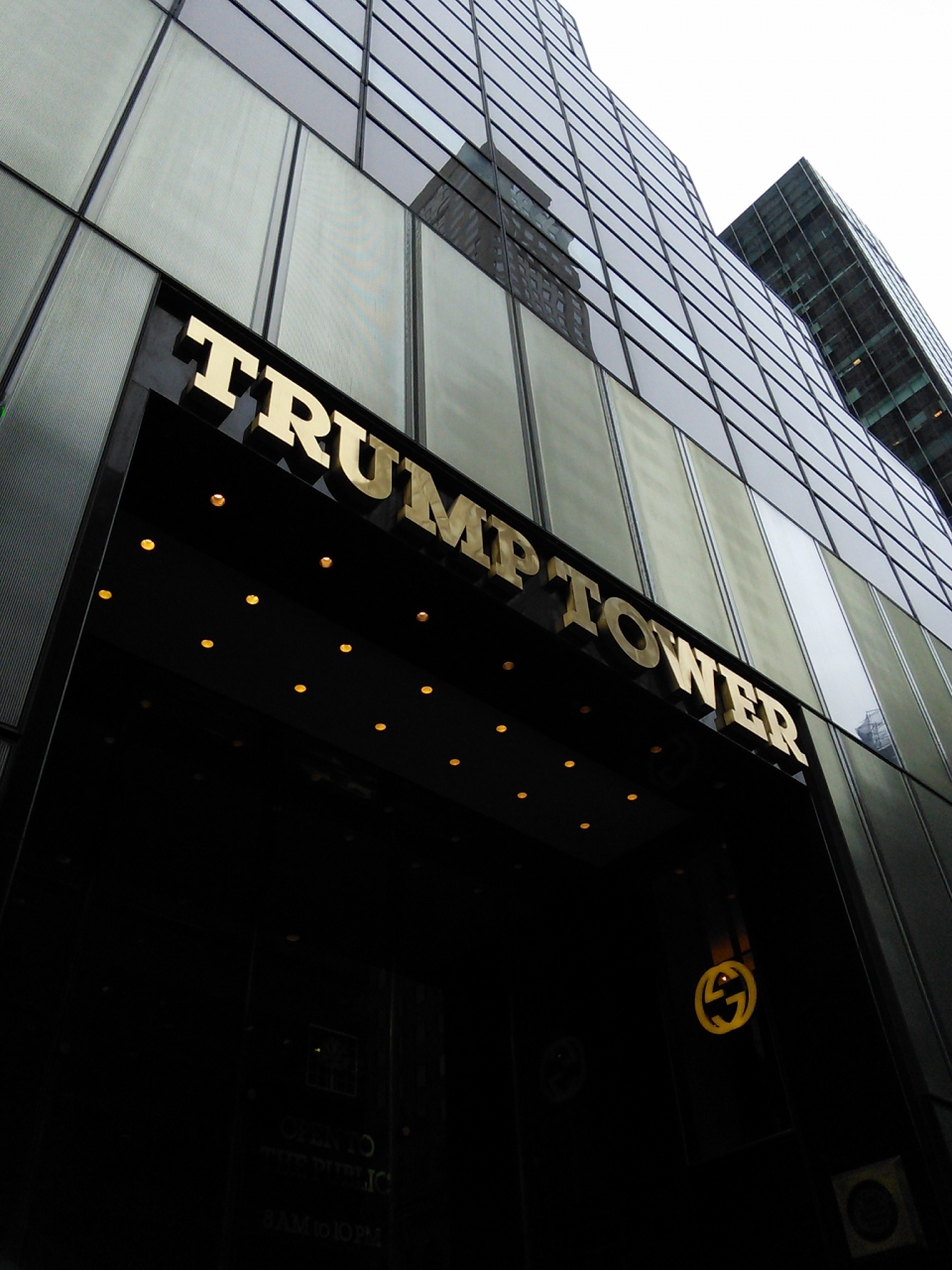 高くそびえる金ぴかのビル。