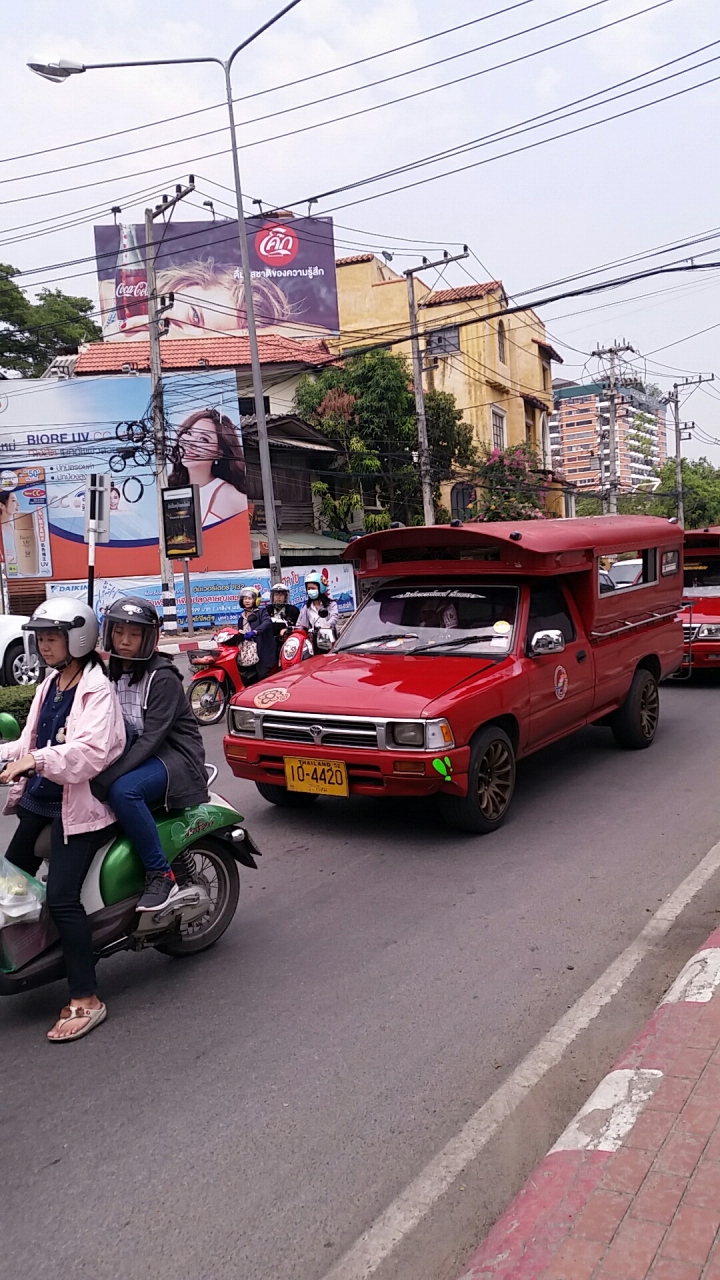 レンタルバイクという選択肢もありますが、ご存じのとおり、タイ人の運転はめちゃくちゃで、ある程度コツがないと非常に危険です。海外で、事故ってたら何していることかわからないので、基本、ソンテオが通常の足で、どうしても急ぎの場合には、仕方なくトトゥクトゥクという選択になります。