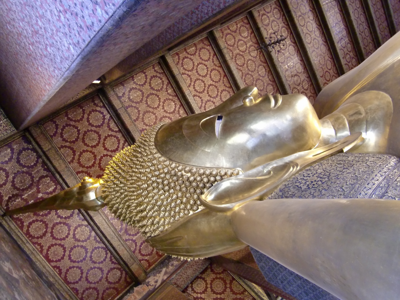 巨大な寝仏が有名な寺院です。全身を写真に収めるのは不可能なくらい巨大でした。