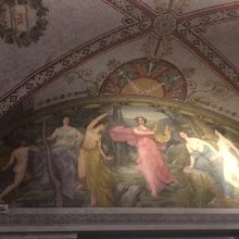 図書館は建物自体は芸術品のようで美しい天井画や彫刻など目が二つだけでは足りない位です。
