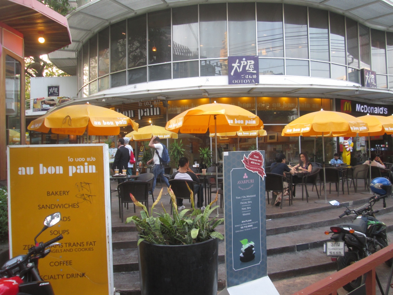 オーボンパンはバンコク市内にたくさんありますが、スクンビット通りのソイ55を入った、トンロー・ソイ15にあるJアベニューの1階にあります。ソイ55の通りを眺めながら、Jアベニューでのショッピングの食事後、こちらでドリンクをいただきなかがら休憩します。