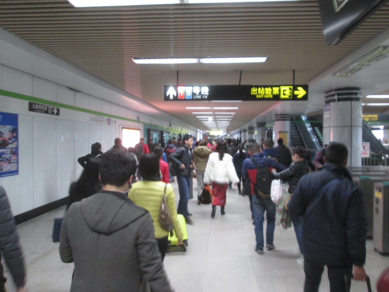 人民広場駅は、北側は南京東道、南京西路、南は人民公園、博物館エリアとなり、駅構内が広い上に改札口、出口がたくさんあり、迷子になりそうです。出口を間違えると目的地にかなり遠いポイントに出てしまうので、駅構内のサイン、地図を確認する必要があります。