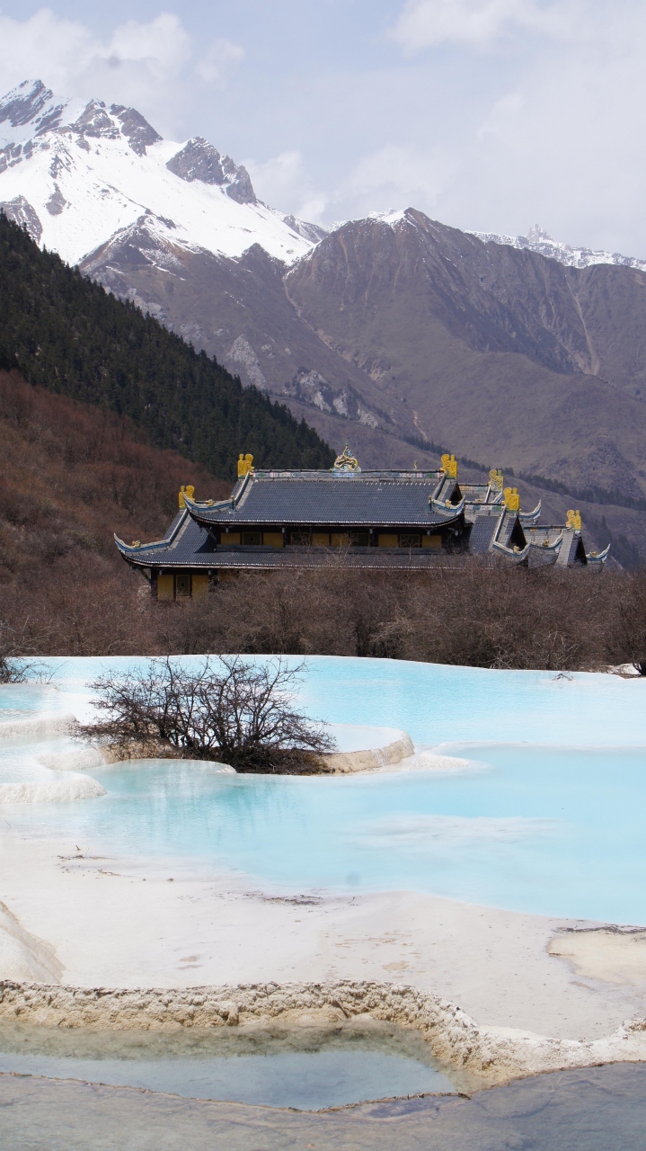5月1日に黄龍のハイキングをしました。ロープウェイを降りて展望台に行くと、黄龍の石灰棚に水が全くないのが見て取れました。旅行前に水が少ないと旅行会社から連絡がありましたが全くないとは思いませんでした。これでは五彩池もダメだろうと諦めていたのですが、ここだけは美しい水で満たされていました。渇水時は6月初旬までは続くのではないでしょうか?行かれる方は時期をよく考えた方がいいと思います。ただ、周辺の山々は雪を戴きとても綺麗でした。