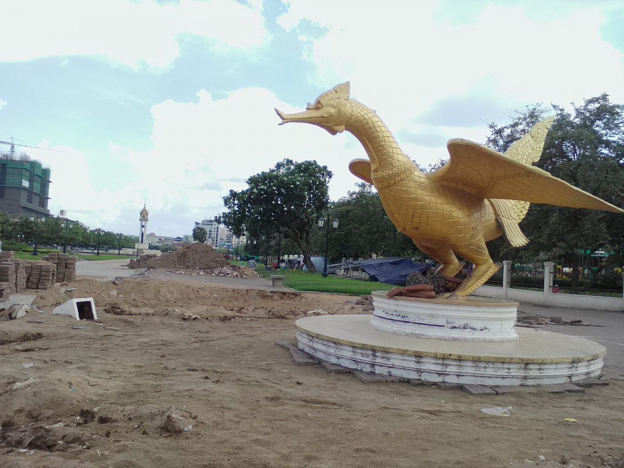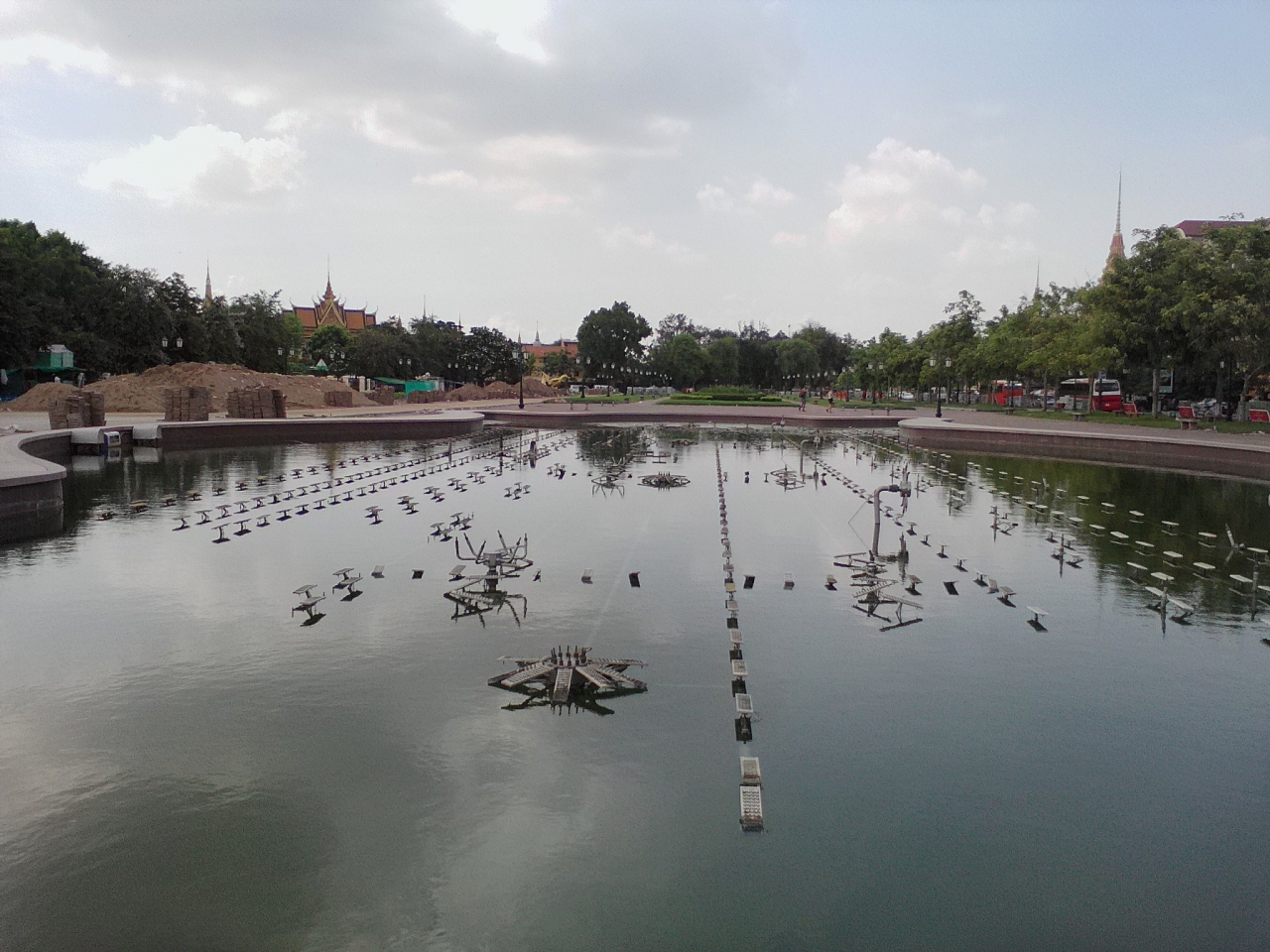 全面改装中で各所工事中。のんびりと過ごせるような状態ではありませんでした。この公園にはカンボジア・ベトナム友好の塔や噴水などがありますが隠れスポットを発見しました。場所は北東の角の辺り、目立たずひっそりとあります。私も小さな日の丸に気が付かなければ危うく見過ごすしてしまうところでした。それは日本のJICAが協力したプノンペン市内の洪水対策プロジェクト(2012-2015)の完成を記した記念碑です。市内各所から雨水を排出するたに整備された地下配管の場所が地図に記されています。地味なプロジェクトですが市民の方にとってはとても重要なことだと思います。こんなところにも日本が関わっているとわかりちょっぴりうれしくなりました。公園を訪れる方はチラッとでも眺めていって下さい。