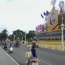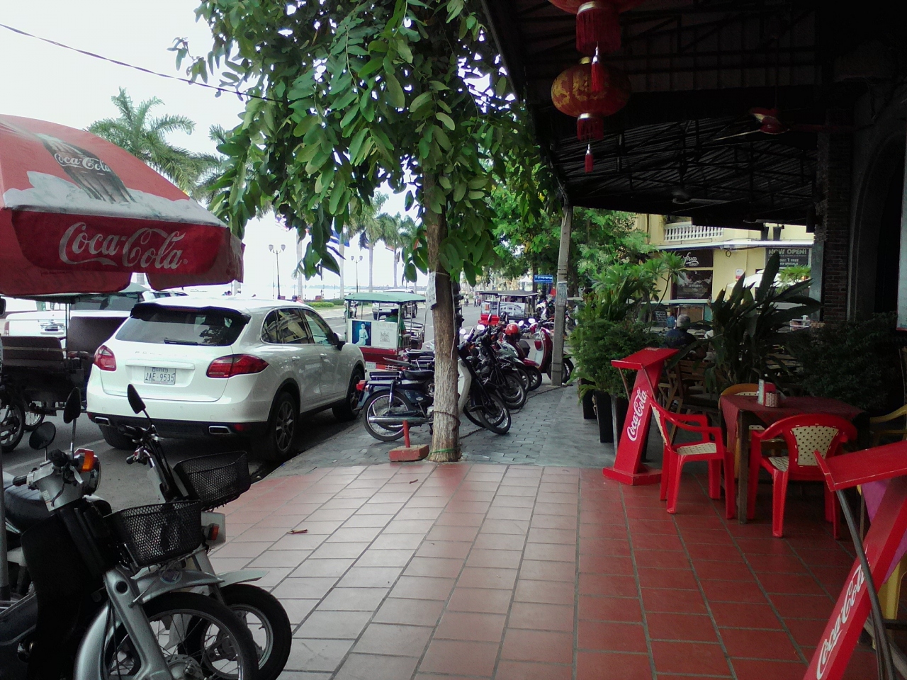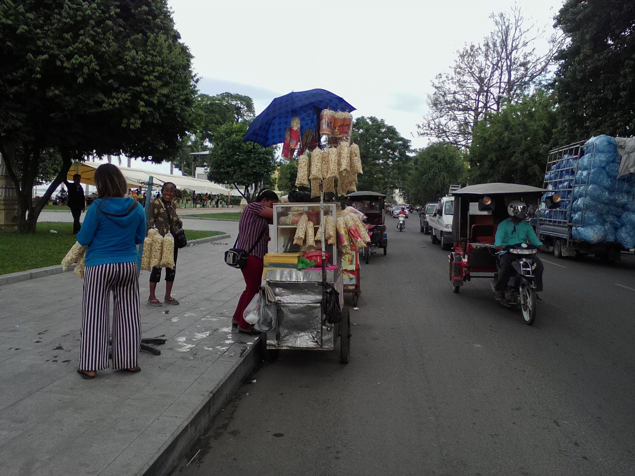 トンレサップ川に沿って続くリバーサイドの通りです。プノンペン市内はどこも車、バイクで溢れかえっていますが残念ながらこの川沿いの気持ちいい通りも交通量は多いです。通りを渡るのも一苦労です。王宮近くの通り沿いにはカフェやレストランがあり西洋人をよく見かけますが車を眺めなからでは気持ちよくないと思います。唯一の救いである川との間にある遊歩道ですが日陰がほとんどありません。日中に行くと日差しが辛いです。夕方以降をおすすめします。