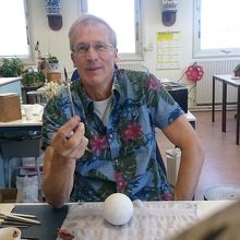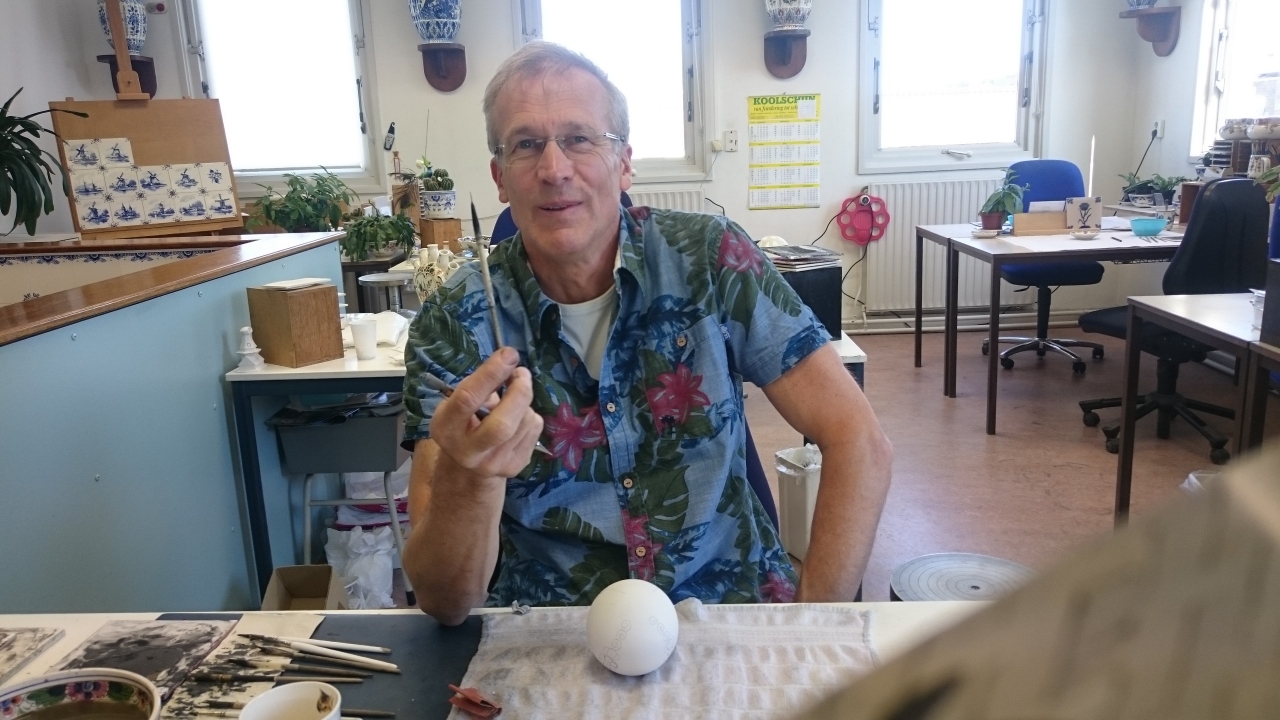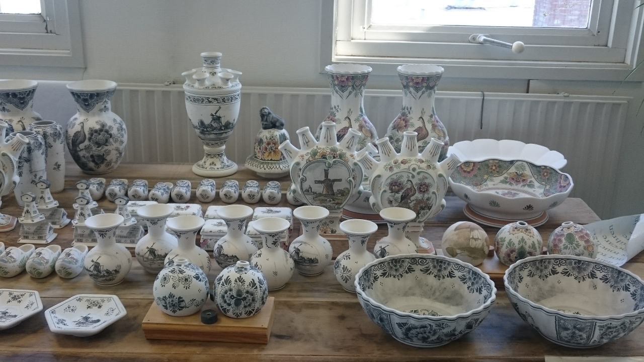 使われる粘土はイギリスから輸入していること、マスプロダクトのデルフト陶器とロイヤルデルフトの見分け方など詳しく教えていただきながら(英語)楽しく制作過程を学ぶことができました。