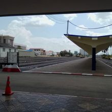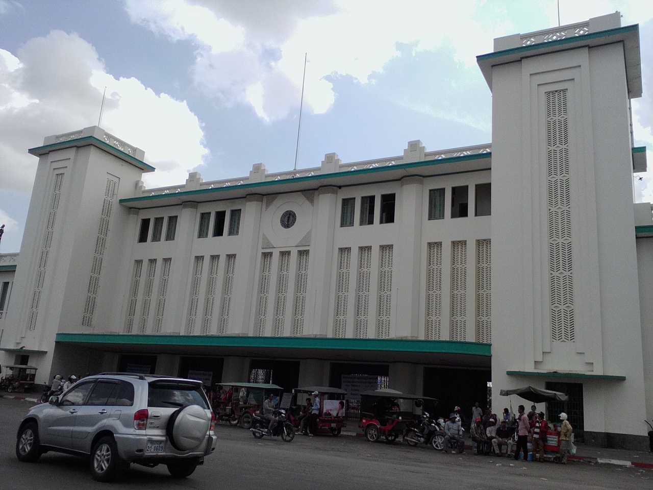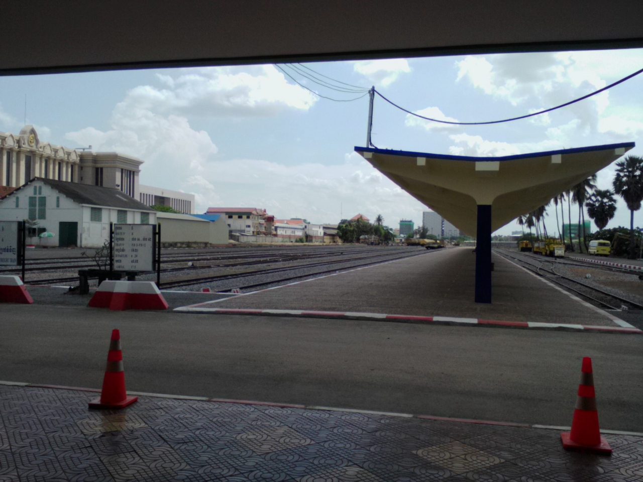 外観は白と緑に塗られかわいらしいレトロモダンといった感じ。フランス統治時代に建てられたものだと思いますが当時からこの色だったのでしょうか。駅構内に入るとがらんとして誰もいなーい。現在は使われてないのかと思いましたが窓口の中は明かりがついており人影が・・・、事情を聞くと列車は金,土,日の週末しか運行されてないという。しかもプノンペンとシアヌークビルの往復のみ。どおりで人がいないはずです。チケットの予約はいつでもできるので窓口に人がいるんですね。けど3人は多いんじゃ…。いい仕事してますね~。残念ながらホームには入れませんでした。
