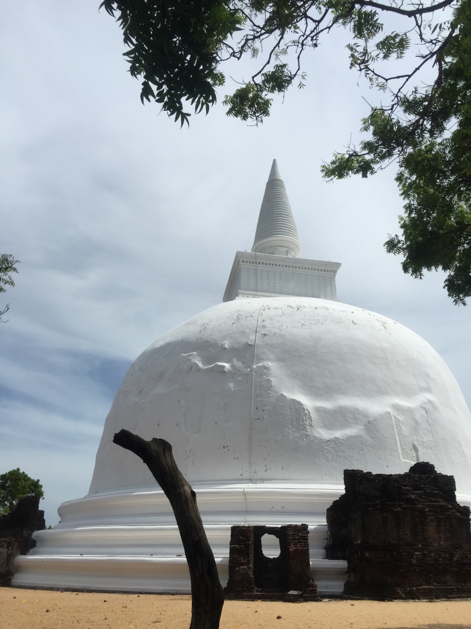 ポロンナルワ保護区のちょうど中心に位置する真っ白が印象的な仏塔です。つい最近までは真っ白ではなく昔のままの風貌だったようですが今ではその跡形もないくらいに真っ白に塗り固められています。すぐ隣にあるランカティラカは多くの人でにぎわっていますがこちらは少な目でした。