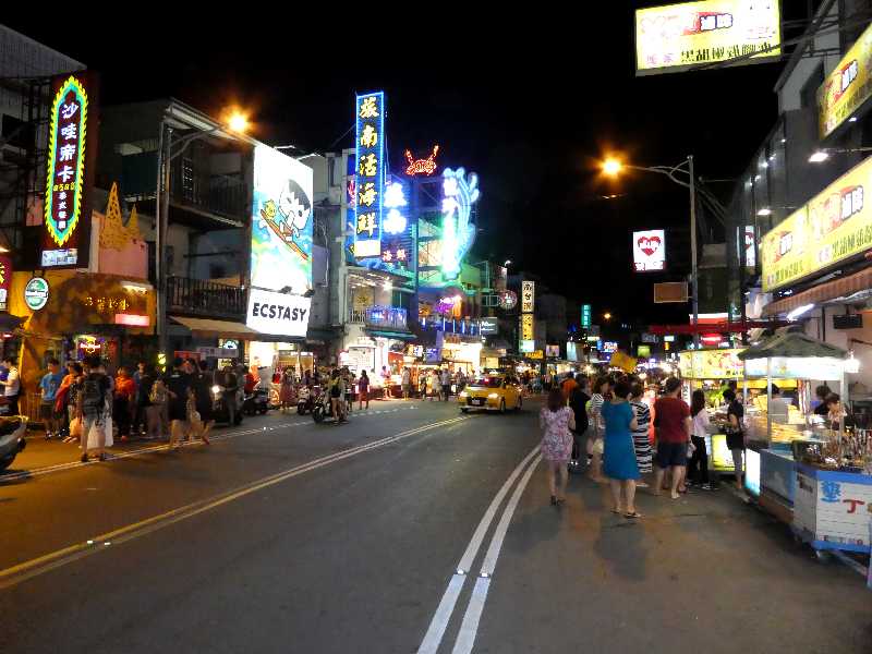 台湾最南端のリゾート観光地「墾丁」のメイン・ストリートである墾丁路は、四車線道路の両側に約2kmに渡って商店やレストランが軒を連ねています。その商店の内容が土産物店とレストランに偏っていて、地元民の日常生活には何の役にも立たない商店街である点では、那覇の国際通りに似た位置付けにありますが、国際通りとは大きく異なる特徴は、夜になると四車線道路の両側二車線を占拠して屋台が立ち並ぶ事です。屋台の数では高雄の六合夜市に引けは取りません。