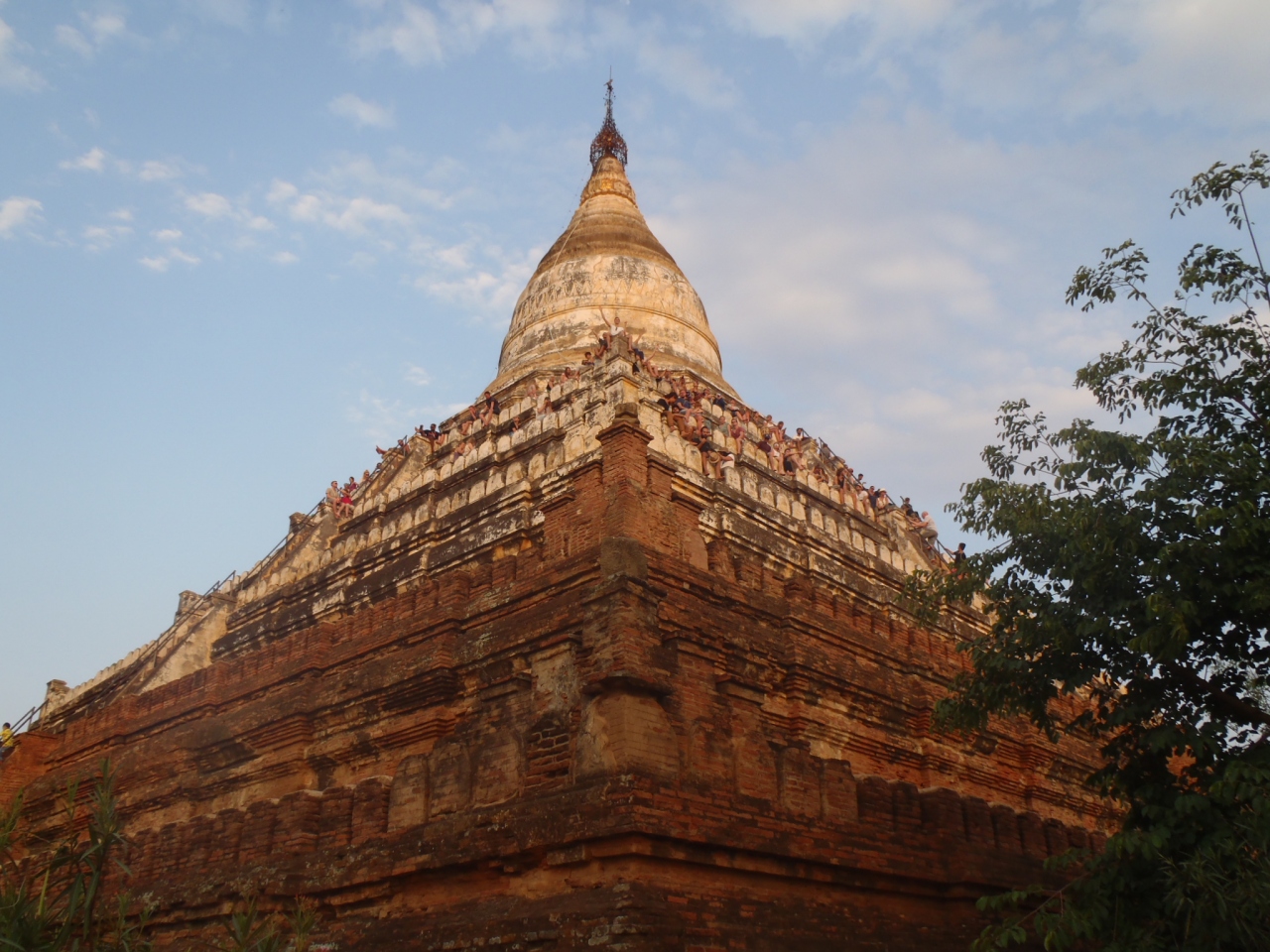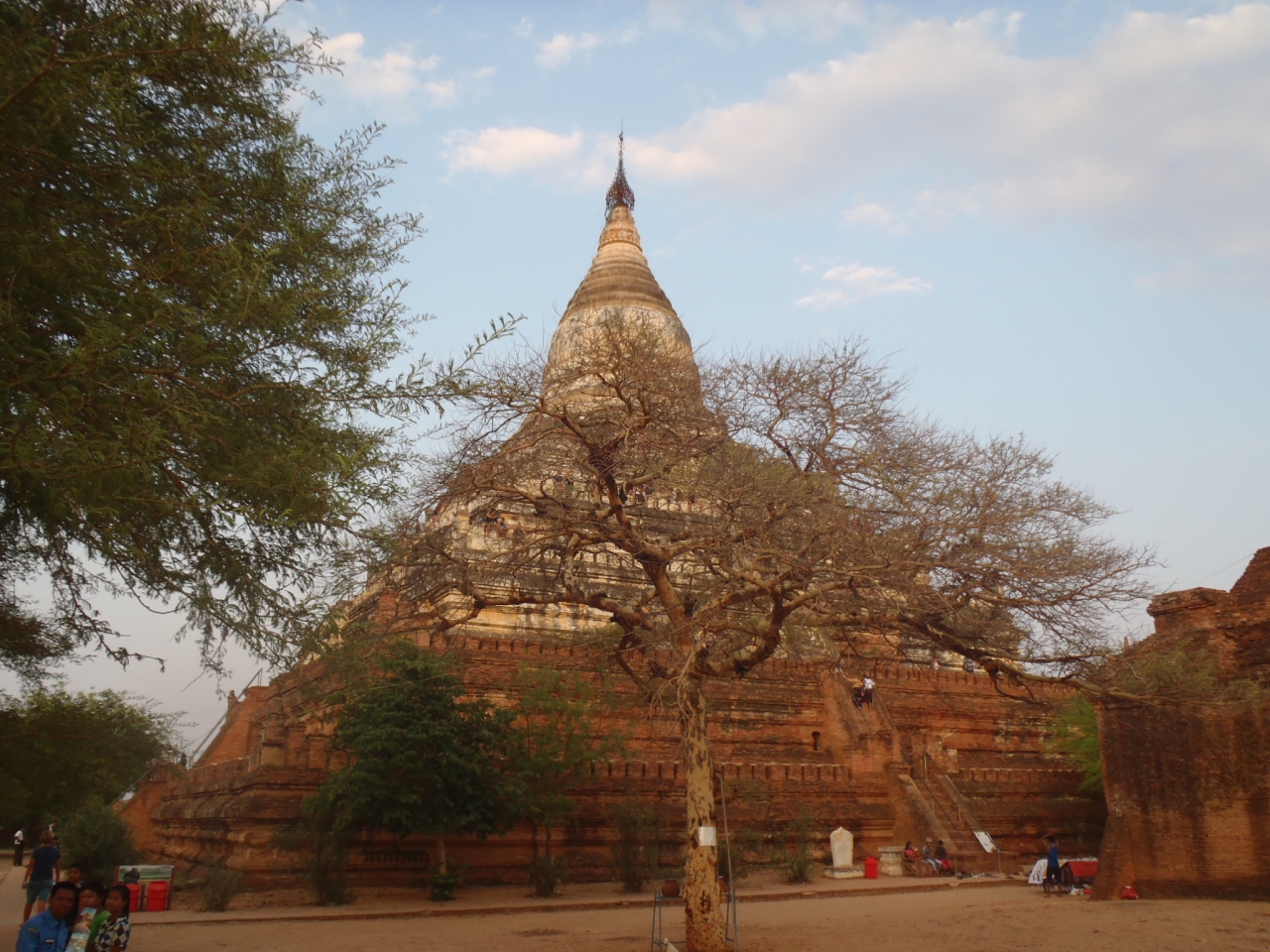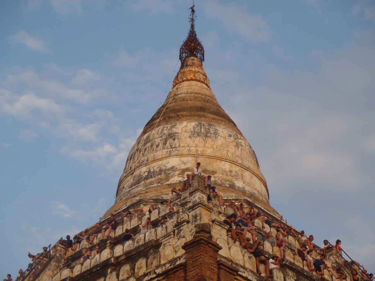 私は怖くて登れませんでした。この日は夕日がとても綺麗だったので下で夕日を撮りました。ここではバガン入域料を払った時のカードを提示する必要があるので忘れないよう注意しましょう。もう一か所夕日鑑賞に行った寺院があるのですがそちらは恐怖心なく登れました。