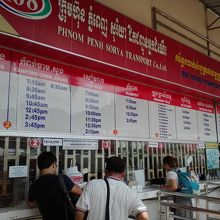 なんとも要領を得ないバスターミナル。チケット販売窓口でシェムリアップへの料金を尋ねても答えてくれない。中にいる職員が他の職員がと何やらヒソヒソと話してる。そしてわからないと。え?そんなことあんの?毎日変わるので答えられないという。本当なんでしょうか?なので今日の次に出るバスの料金を教えてくれというとIDを提示して下さいと。ただバスの料金を尋ねているだけなのにこの煩わしいやり取りは何なんでしょうか?料金を張り出しておけば一瞬で済むことなのに…。で料金は7.25$。他に何とか聞き出した料金はシアヌークビル6.75$、ホーチミンシティ(不定期)10$。ちなみにキャピトルツアーで聞いた料金はそれぞれ5.5$、5$、10$。明らかに高いのでわざわざこんなバスターミナルは使う必要はなさそうです。