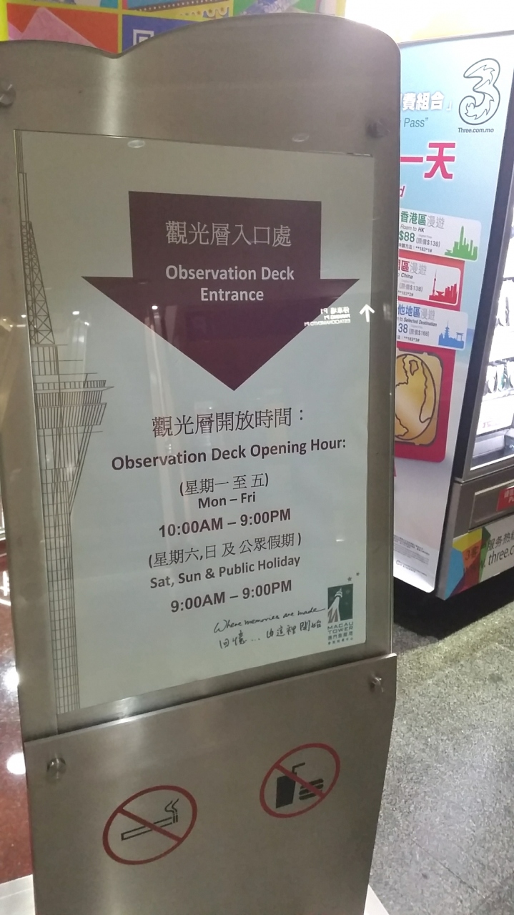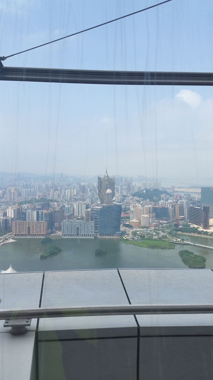 ここはマカオ半島の南端にある、マカオで一番高い建物です♪(^_^)/ここからはマカオ半島、コタイエリア等が一望でき、タワーの周りを歩ける『スカイウォーク』や『バンジージャンプ』、展望フロアーからタワーてっぺんまで登れる『クライミング』なども出来ます♪(^-^ゞ値段はバラバラですが、セットでお願いすると安くなりますよ♪(^_^)/ただ、マカオは天候が変わりやすいので、天気の良い日に上る事をオススメします♪(^-^ゞ