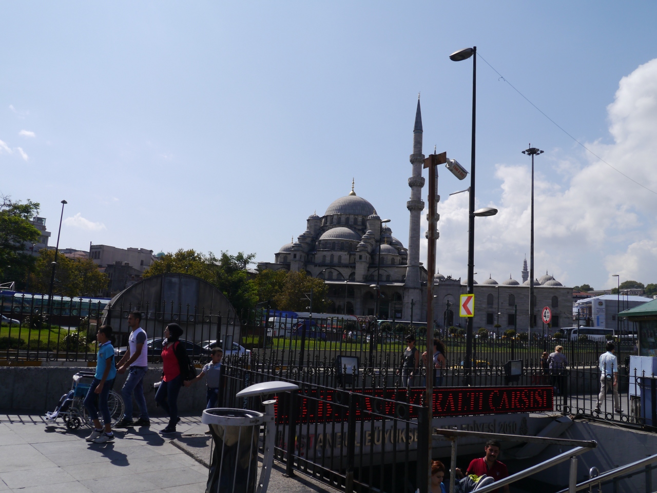 ガラタ橋の旧市街側の広場で、トラムのエミノニュ駅があります。旧市街側に目を向けるとイェニ・ジャーミィが、新市街側には橋を挟んでガラタ塔を見る事ができます。ガラタ橋の西側にはサバサンド船やボスポラス海峡クルーズ船の発着所があり観光客が多く混み合っています。