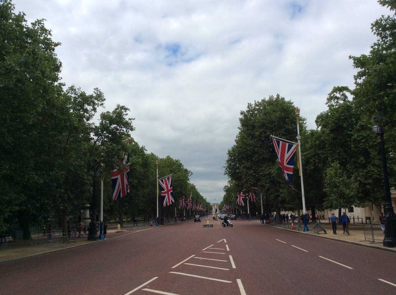 トラファルガー広場からバッキンガム宮殿に続く道ですが、イギリス王室の祭典や儀式の時にはよくテレビでも見かける道路です。直線930メートルの距離があります。