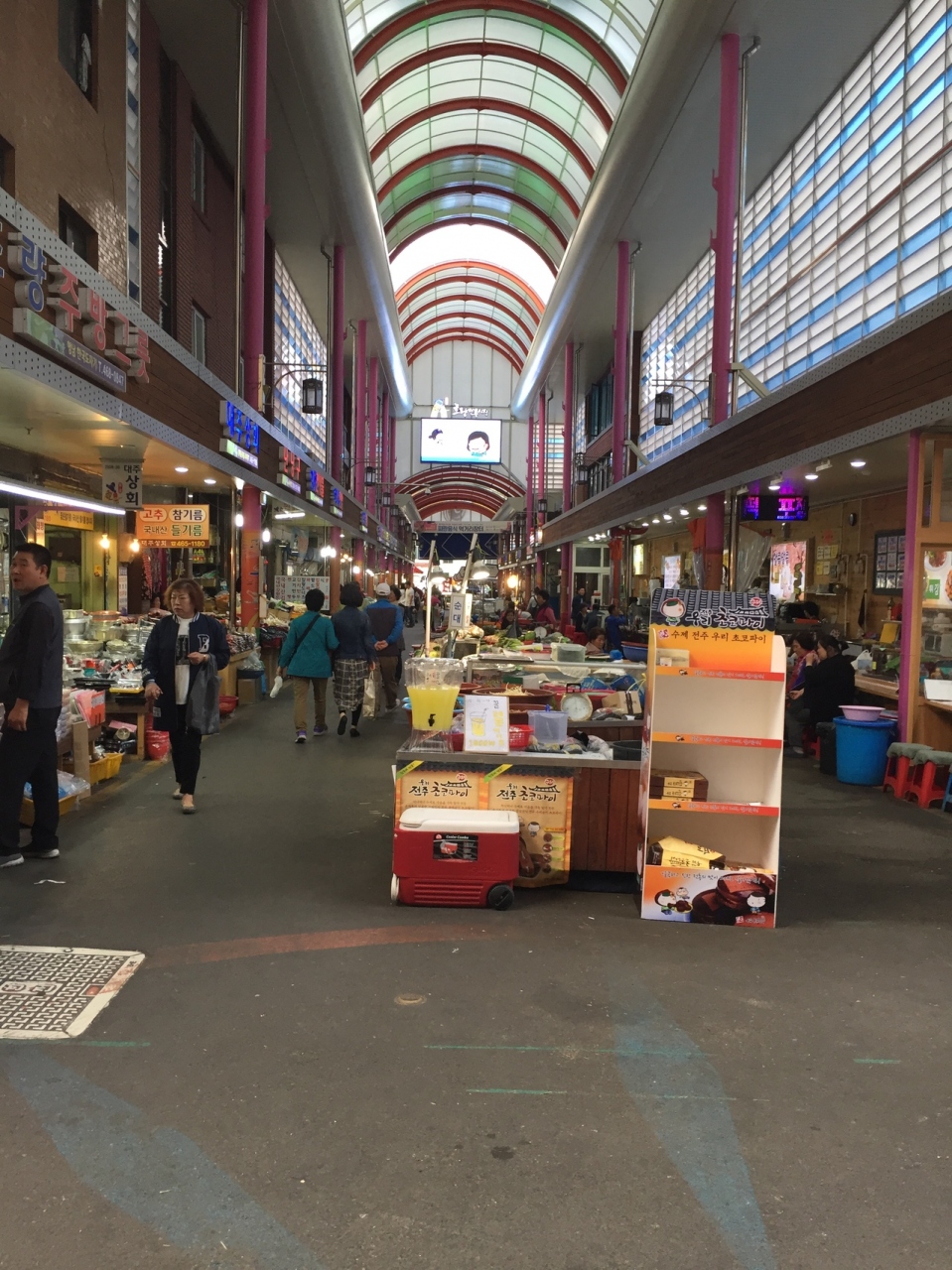草梁イバグギルに行った後に徒歩でいきました。地下鉄釜山駅と草梁駅の中間くらいの位置なので、釜山駅からでも徒歩で行くことが出来ます釜田市場よりも規模が小さく、市民が買う食料品が露店で売っていましたが、釜田市場のように飲食店はないです。