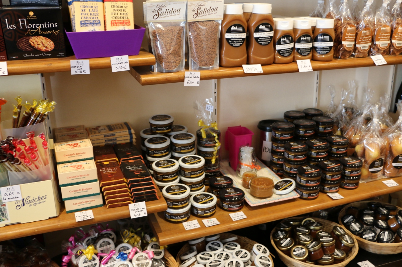 ブルターニュの特産品、ワイン、クッキー、塩バターキャラメルや塩バターキャラメルクリーム(クレープやパンに使用可)など、お土産に良さそうなものが見つかります。