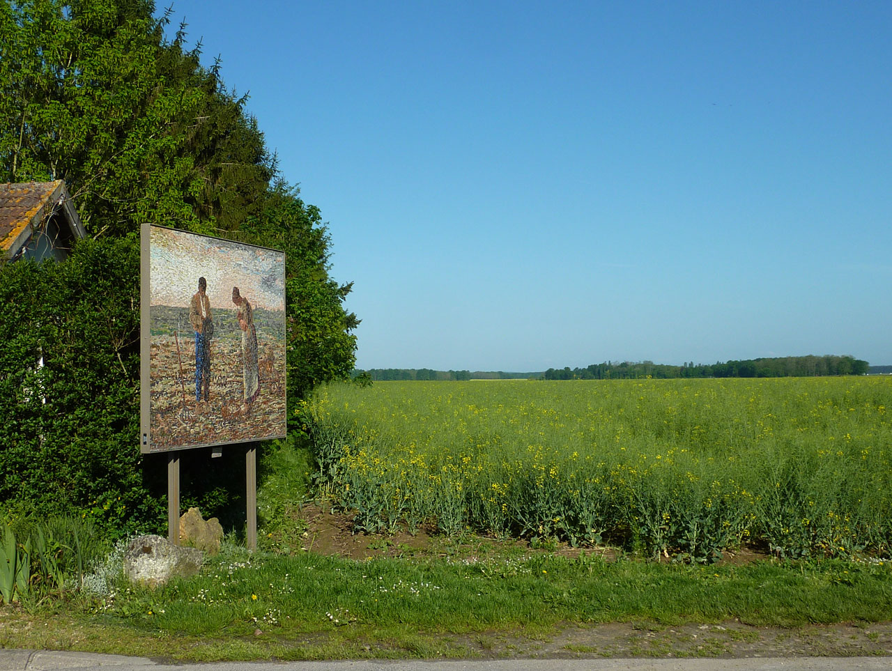 まず村の入口にあるミレーの「晩鐘」の看板を写真に一枚パチリ。