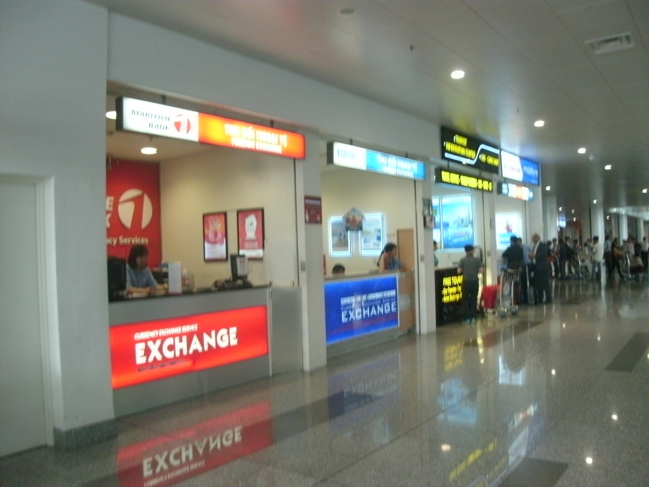 ノイバイ新国際ターミナルでは入国後に税関を通過した中央出口の左右に両替商が軒を連ねます。