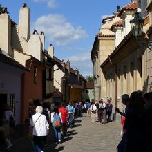 その昔錬金術師たちが住んでいたのが、この通りの名前の由来だそうです。小さな扉の可愛らしい建物が並んでいて、今は雑貨屋さんなどのショップになっていました。他に見所としては、『変身』を書いたカフカが仕事部屋として使用していたという家がありました。黄金小路は、それほど見学時間はかからないと思います。