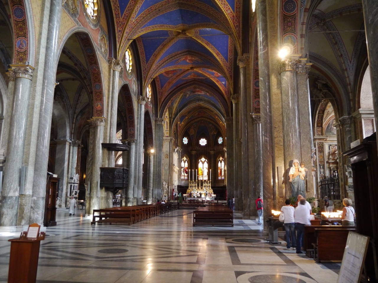 パンテオンから徒歩すぐの場所にあるサンタ・マリア・ソプラノ・ミネルヴァ教会。外観はシンプルですが、ゴシック様式の建築と天井の青の色合いがきれいです。人が少ないので落ち着いて鑑賞できるのもいいですね。表の象の像はなんだろうと思っていたのですが、ベルニーニ作だったと後で知りました。