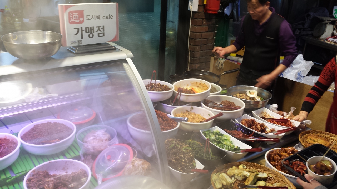 こちらのお弁当カフェのシステムが好きで再訪しました。昔ながらの商店街に並ぶ沢山のお総菜やさんめぐりはソウルの日常を垣間見れるようでとても楽しいです。お店の方達は外国人観光客にも慣れっこのようで、言葉に関係なくお弁当作りを楽しめます。