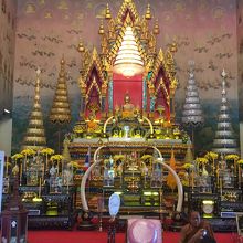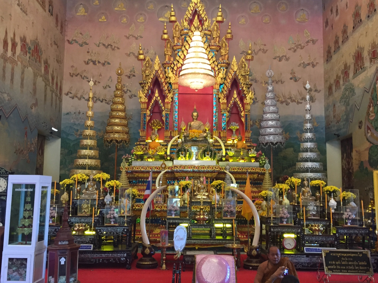 大きい建物の中には、定番の金色に輝く仏像と祭壇が中央に鎮座しており、