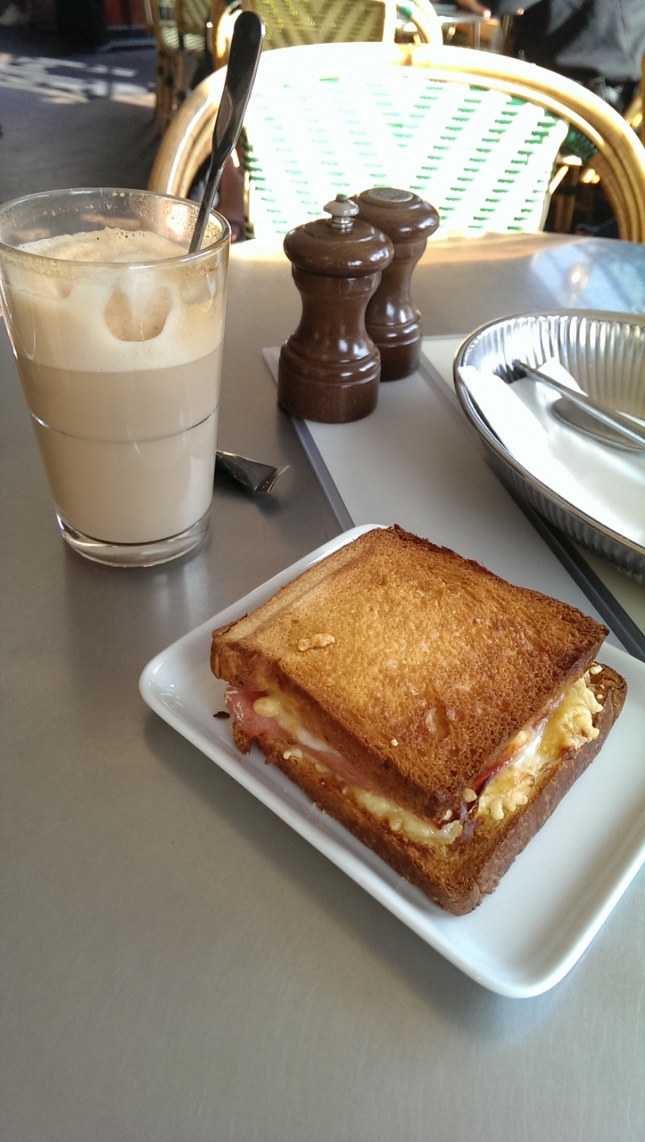 モーニングのセットもありますし、エッグベネディクトなど朝食メニューが充実のなか、クロックムッシューのカフェヨーロッパ版をチョイス。ちゃんとフライパンでバターをじゅわっとさせていてカリカリ&コク旨でした。コーヒーも安くはないけど、熟練バリスタの一杯を求め、朝から人気があるようです