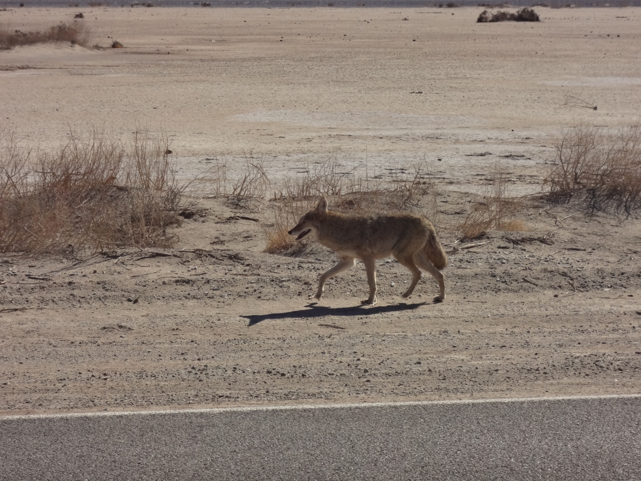 極度に乾燥しています。動物も生きられないほど乾燥しているエリアですが、狼を発見して、みんな車を止めて見ていました。