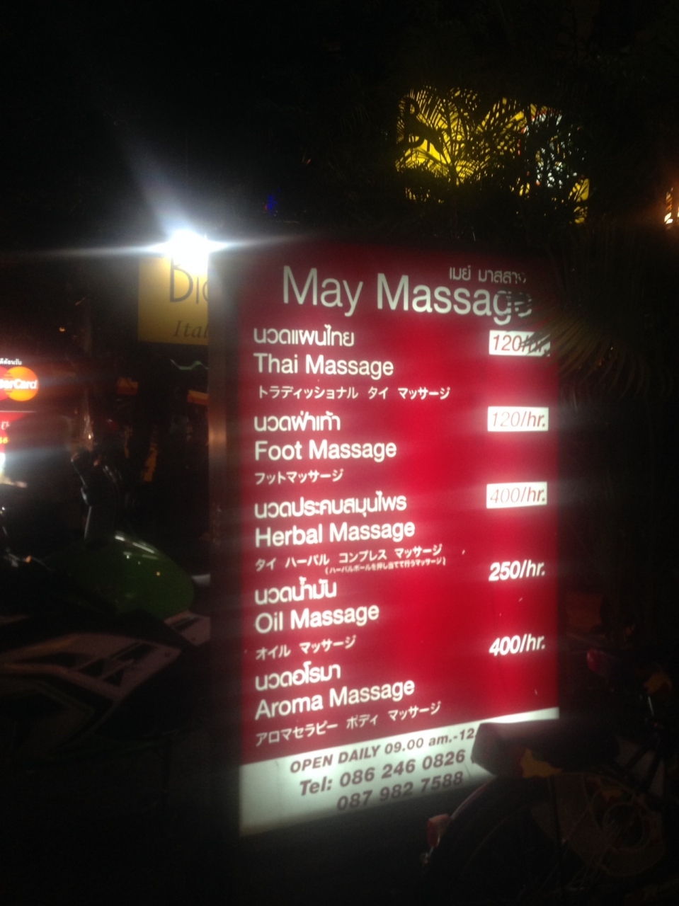 こちらの口コミを見て絶対行こうと思ってたマッサージ屋さんです。1時間120バーツの激安!チップをいれても400円くらいでした!安いのでイマイチかも、、と疑ったのですがきちんとマッサージしてくれました(笑)滞在中は毎日通ってました。場所はレストランの二階にあり、ちょっとわかりづらいかも。。。