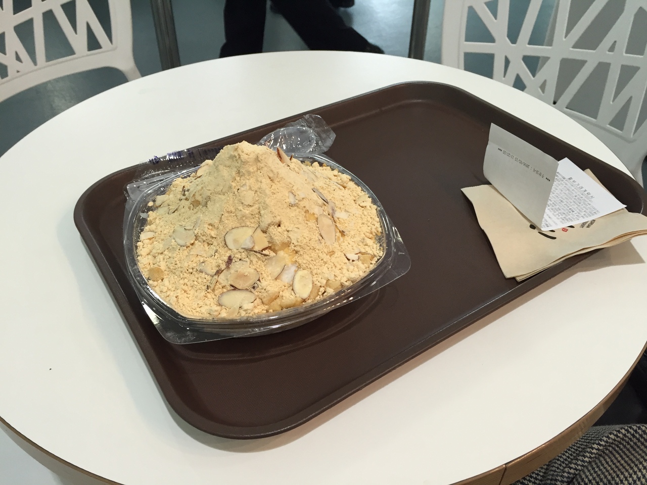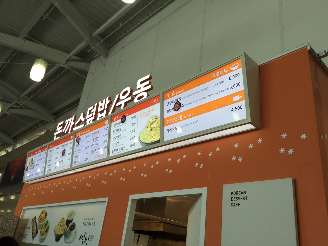 金海国際空港空港の国際線制限エリア内でもソルビンのかき氷を食べられます。喫煙ルームの近くのお店で、きな粉かき氷7000wを食べました。最初はきな粉にむせる感じでしたが食べら進めるとだんだん馴染んできて美味しくなりました。餅が少し入っていますので、ボリュームもありました。出発前のリフレッシュに良いと思います。ただ、量が多いので、女性は2人で1つくらいでちょうどいいと思います。