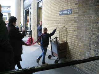 映画ハリーポッターで、ハリーがカートを押して進み、