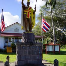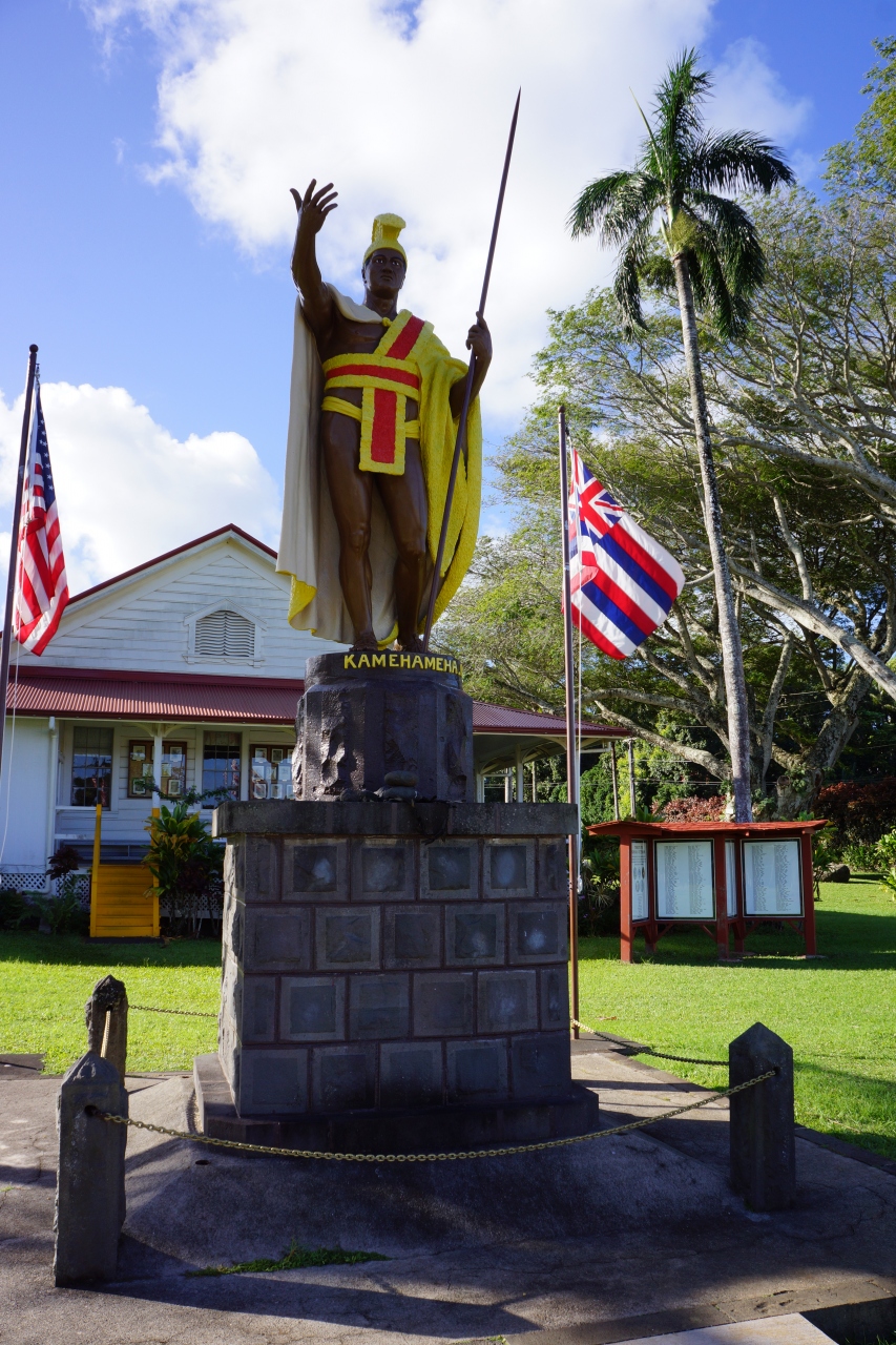 一番有名なのは、ホノルルにある大王像でスマートな感じですが、こちらの像はちょっと「ペンキ塗りたて」?みたいな感じがする像でした。