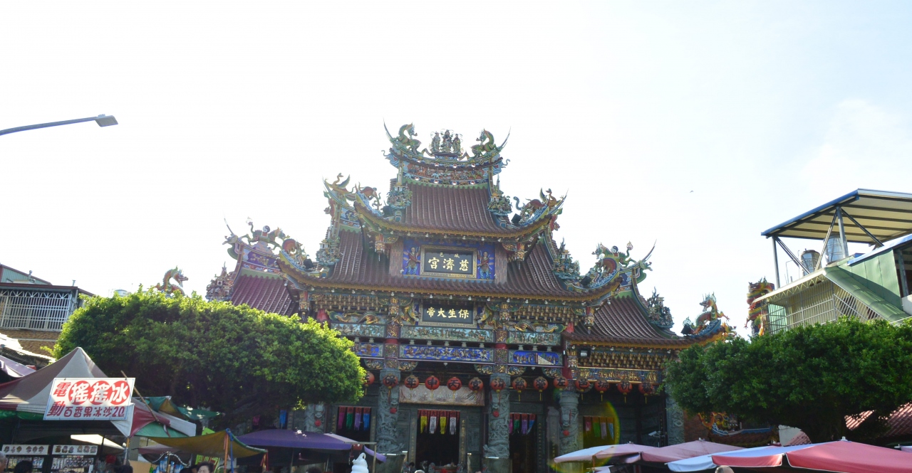 蓮池潭の龍虎塔のちょうど前に位置している寺院です。派手派手な装飾と色彩が目をひきます。龍虎塔の前ということもあり、お宮さんの前にはお土産や飲み物、アイスクリームなどの売店もあって、おおぜいの観光客で賑わっていました。