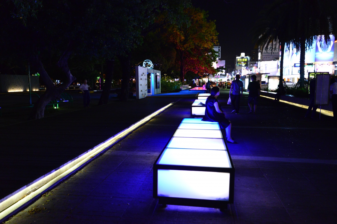 中央公園の中山一路沿いで行われている光のアートイベントです。いわゆるイルミネーションとは一線を画すもので、思っていたより暗い感じでした。あくまでアートなんですね。この光の回廊のすぐ横の公園内にはカフェもあります。