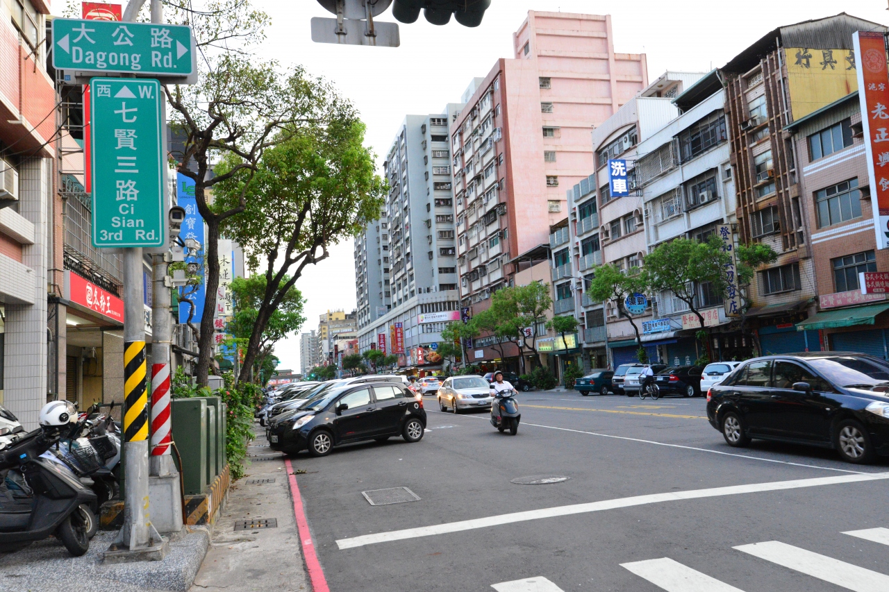 幸福川に平行してその南を走る七賢路が七賢橋で愛河を渡ると左側に道路が曲がり、七賢三路となります。近辺には高雄市立歴史博物館以外はこれといった観光スポットはありませんが、ところどころに古い洋館が残っていたりしました。