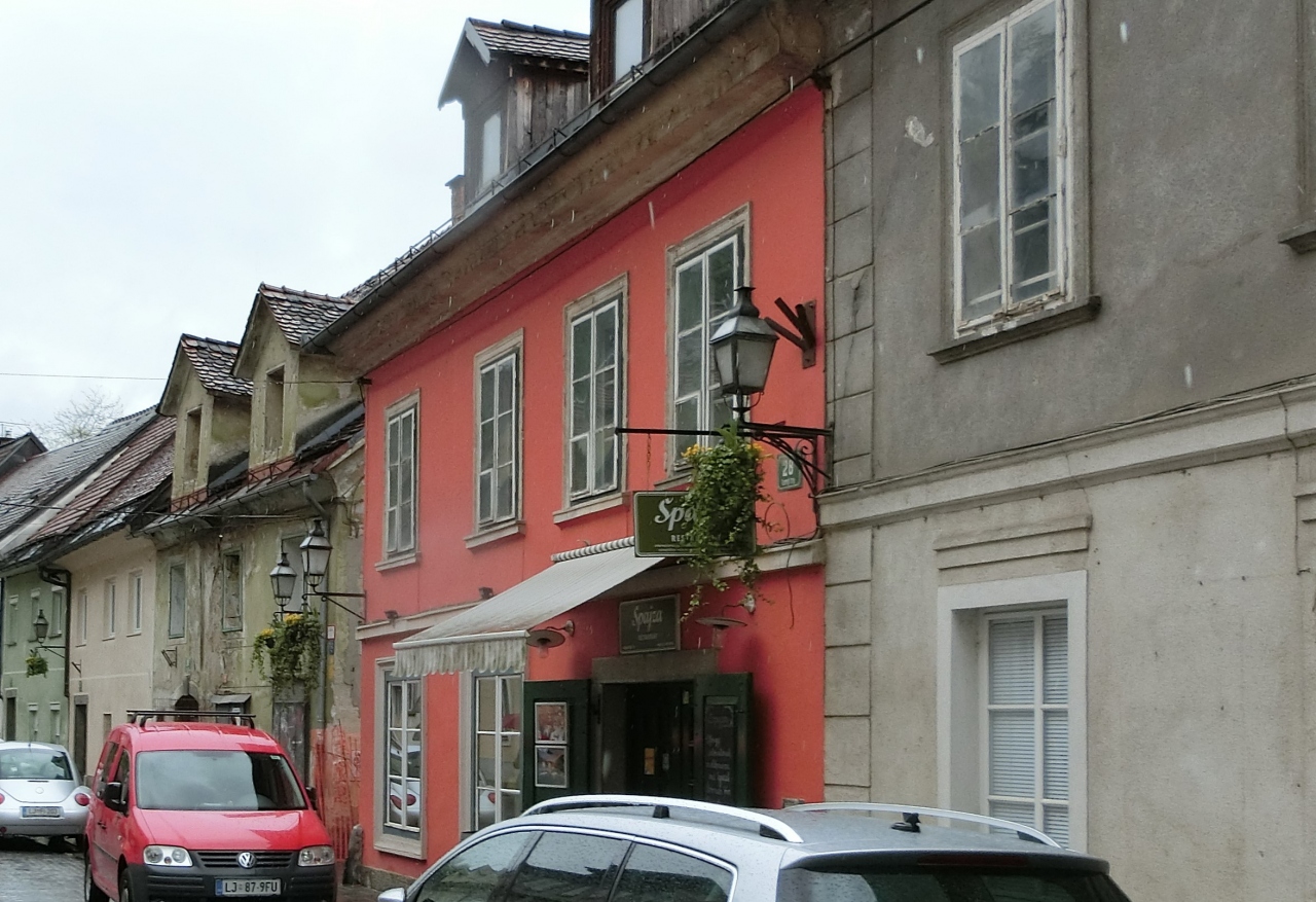 旧市街の中にはあるが、三本橋などがあるリュブリャナ城北側ではなく、南側にあるので周辺に商店は少な目で落ち着いた雰囲気。
