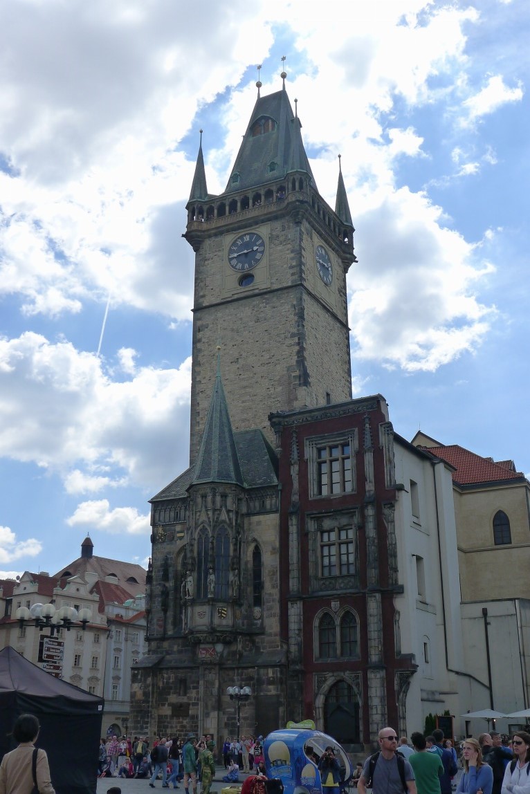 旧市庁舎の見所といえば、毎時00分にからくりが動く天文時計と、エレベーター付き展望台。旧市庁舎がある旧市街広場は広いですが、時間が近付くと天文時計のところに続々と人が集まってくるので、すぐ分かると思います。展望台はちょうど時計の上にあり、360度のパノラマビューが楽しめておすすめです。