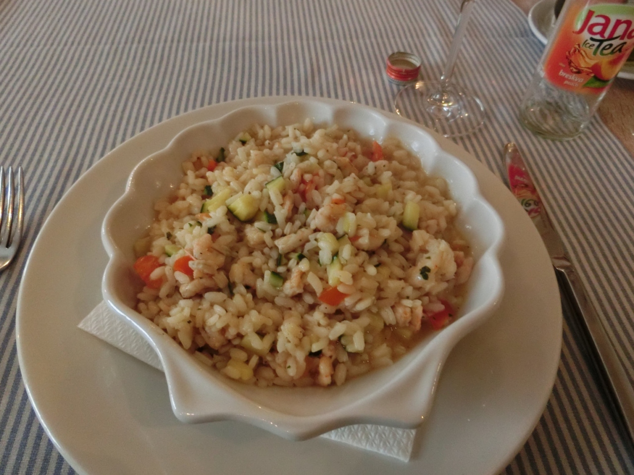 スカンピのリゾットもメニューにあったが、スカンピの解体は2日前に体験済みだったので、剥き身の海老と野菜が入ったこちらを選択。