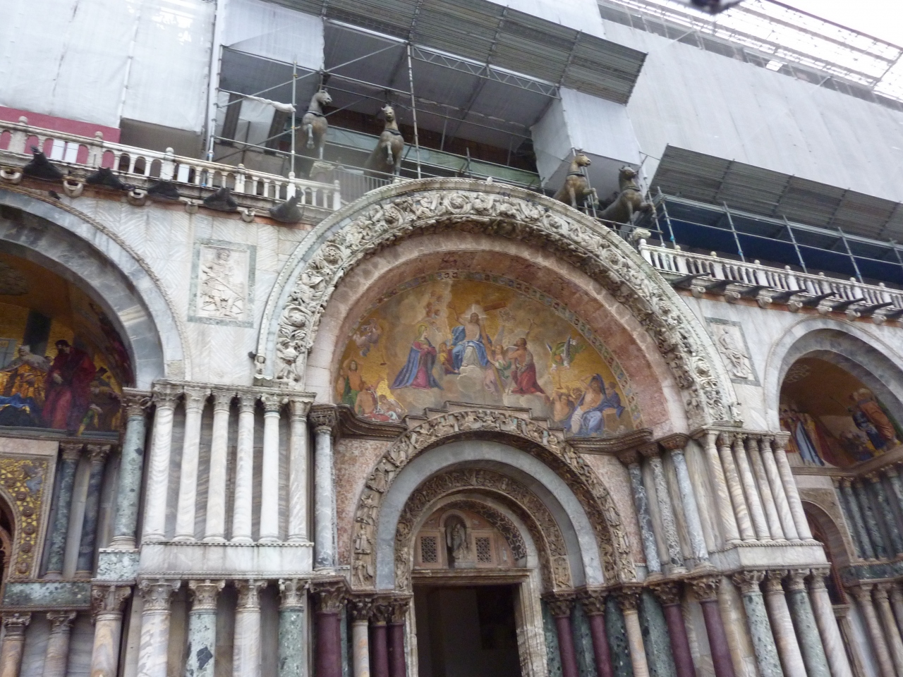 ヴェネティアの中心、サンマルコ広場に面して建つ、街の守護聖人を祀っている寺院です。9世紀にエジプトから運ばれた聖マルコの遺体を納める為に建てられ、大火に会い再建されたり何度か修復されています。