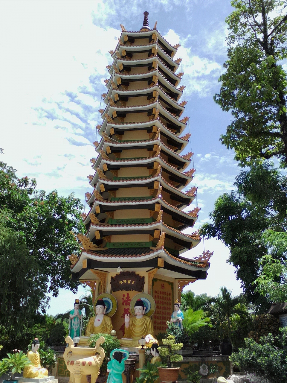 市内にある大きなお寺。Phuong Thanh通りとMac Thien Tichの交差点のやや北側に入口となる大きく立派な門があります。内部はきれいに整備されていて本堂までの通路の右手には観音像や涅槃像、見事な仏塔などがありまるで公園のようです。本堂内はちょっとかわいらしい感じ、ぜひ覗いてみて下さい。