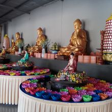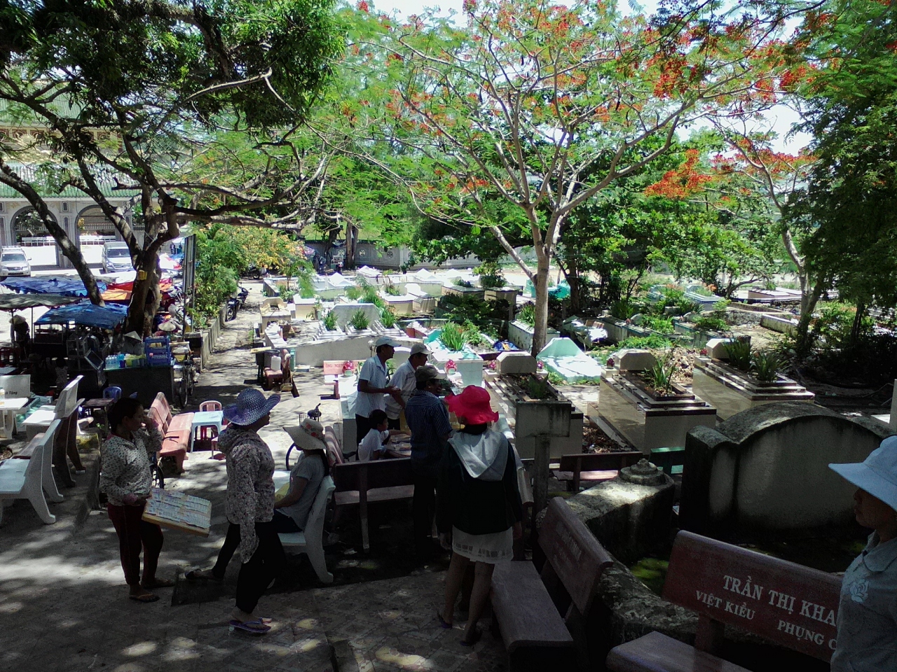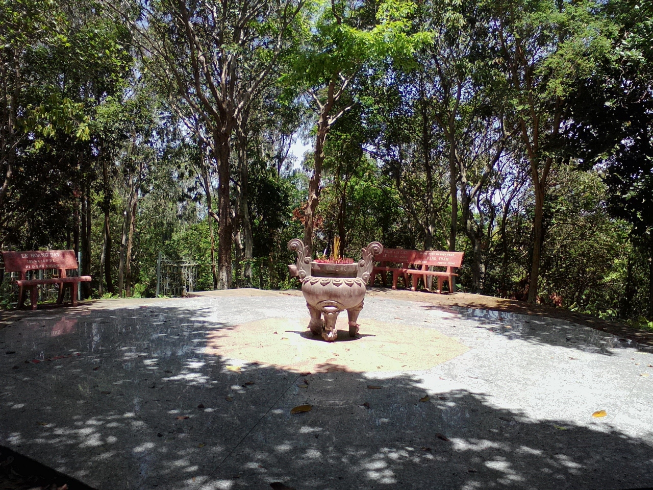 小山を背にした緑あふれる寺院。もしやと思いお堂の裏手に回るとやっぱりありました。山を登る階段が。早速登山開始。急な階段でしたがほんの2,3分で頂上?に到着。ぽつんと大きな香炉があるだけでしたが、さらにその奥に下る階段を発見。少し下ると道が左右に分かれたので右へ進みました。山を下ったところに別の寺院と墓所がありました。後でわかったことですがこの山(ビンソン山)一帯には遊歩道が設けられており寺院や墓所が点在しているようです。私が右へ進んだところを左に行けば鄚公廟にたどり着けます。プチトレッキングができます。